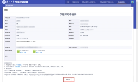 6.学生收到办结通知后,返回申请界面,查看教务处办理意见,学籍异动办结。