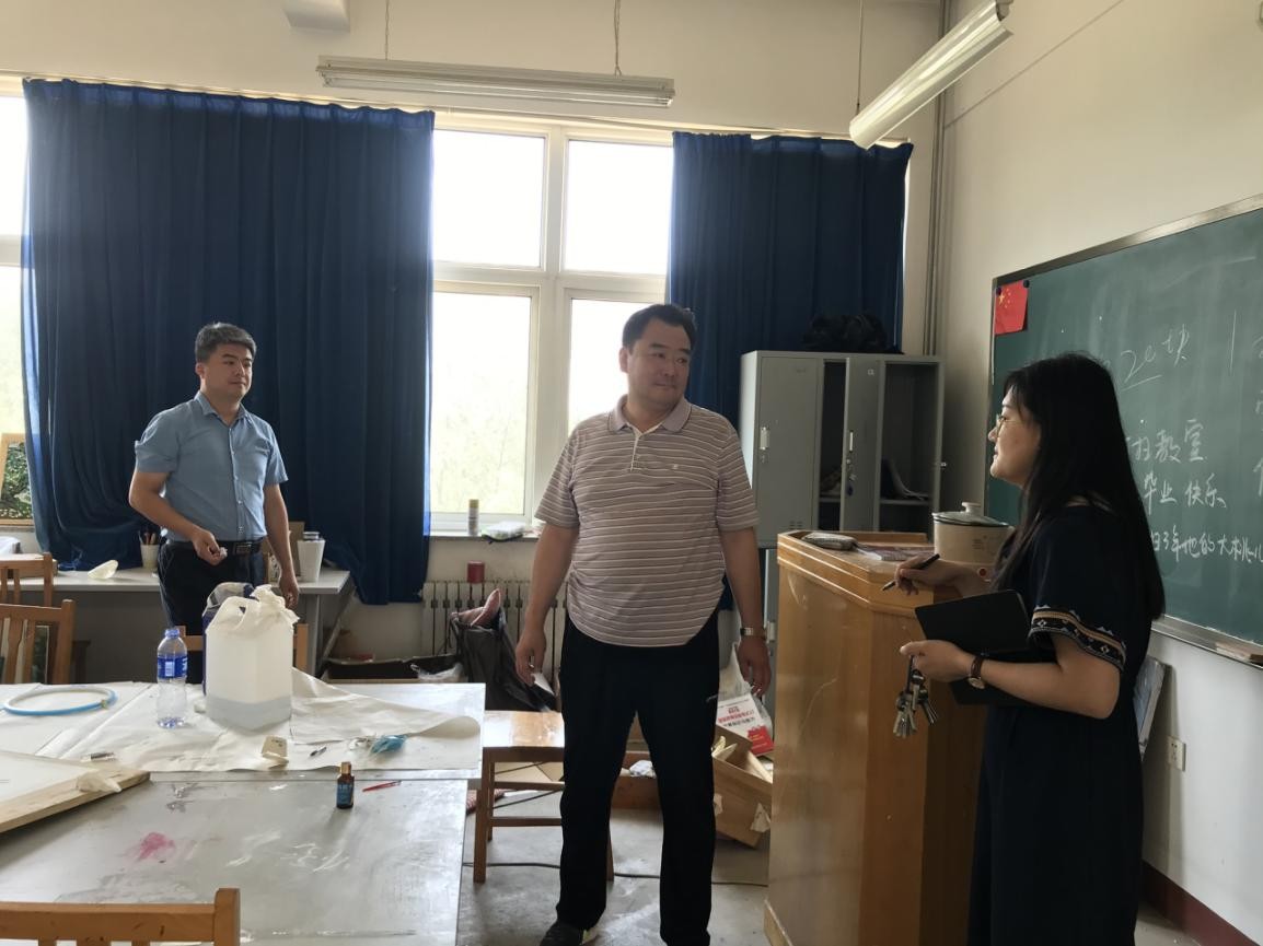 党委书记张文超,党委副书记宁岩鹏,学生工作队伍全体人员对学院专业教室进行安全检查。